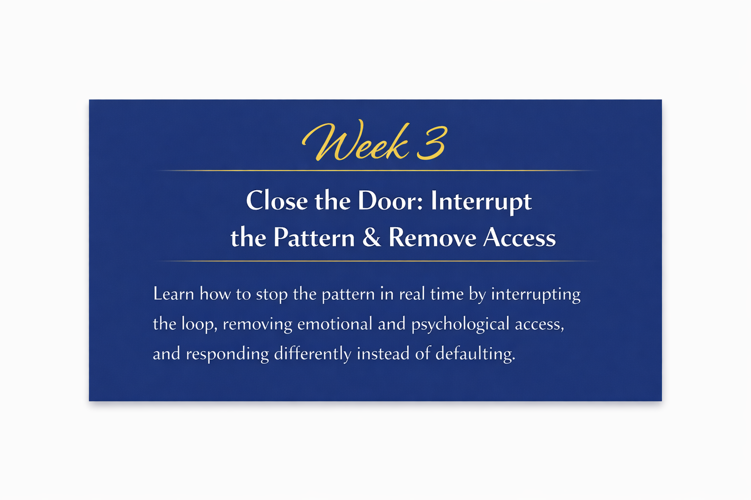 You will learn how repetition actually works, why it overrides logic, how it gets reinforced through emotional survival patterns, and how to shut it down without living in fear, hypervigilance, or self-blame. This program is built for anyone who are done circling the same lesson and are ready for closure.